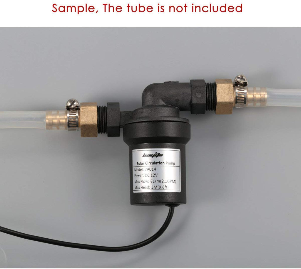 - Circulation pump is non-self-priming pump. Max Flow Rate: 2.1GPM, Max Discharge Head: 9.8ft