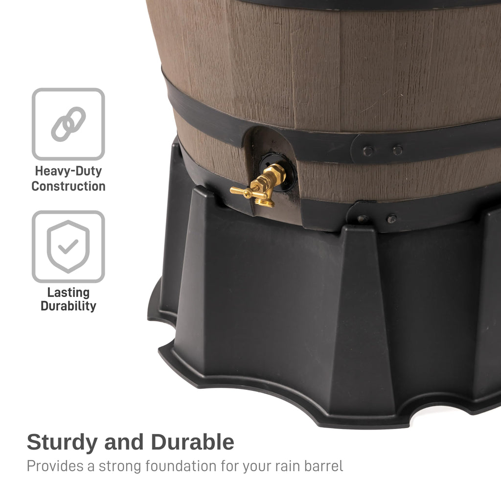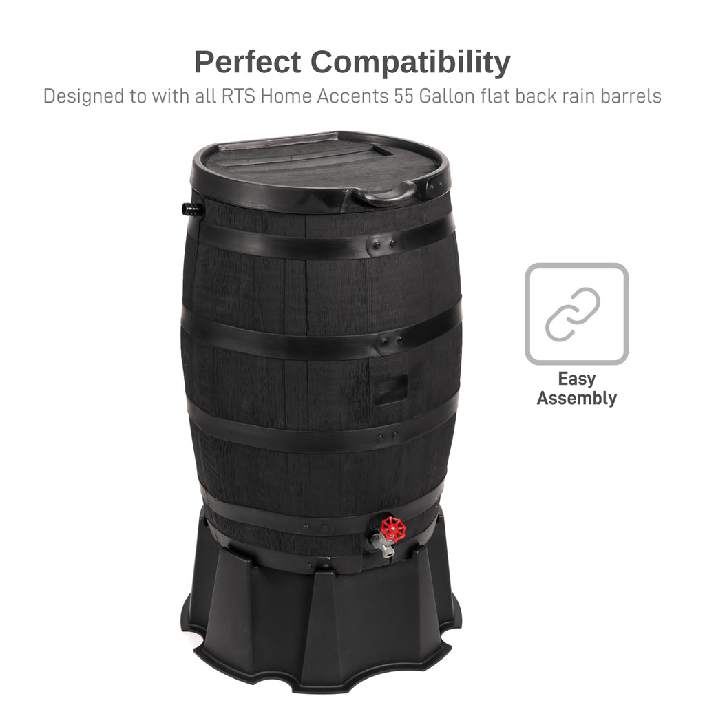 - Sturdy and Durable: Provides a strong, weather-resistant foundation to support your 55-gallon rain barrel for long-lasting use. **Note: Only compatible with the 55 Gallon Premium Flat Back Rain Barrel with Removable Lid from RTS Home Accents. NOT compatible with the 50 Gallon Flat Back Rain Barrel from RTS Home Accents or rain barrels from other manufacturers.