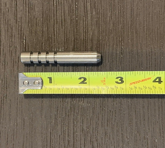 These custom stainless steel dowels were designed exclusively for Carolina Coops to securely prop open the windows on your chicken coop. Each dowel measures 2 ⅜" x ⅜", with a tapered end for easy insertion and a grooved end for better grip. Simply drill a ⅜" hole about halfway into your window frame—the snug fit keeps the dowel firmly in place while still allowing you to remove it by hand when needed.
